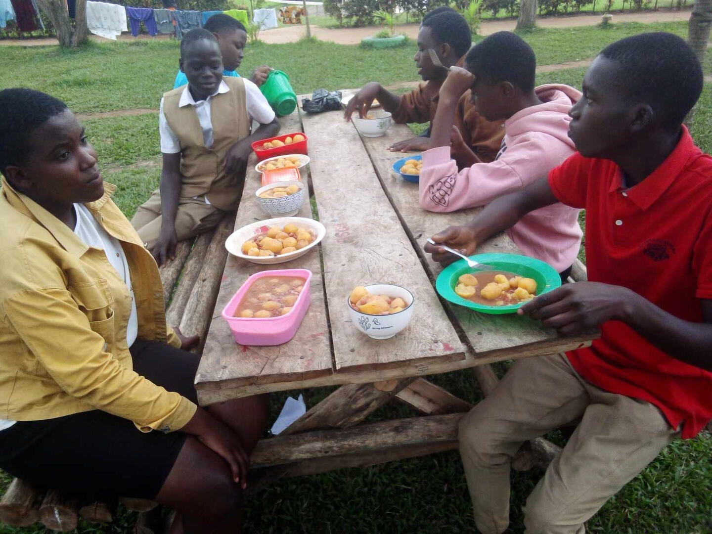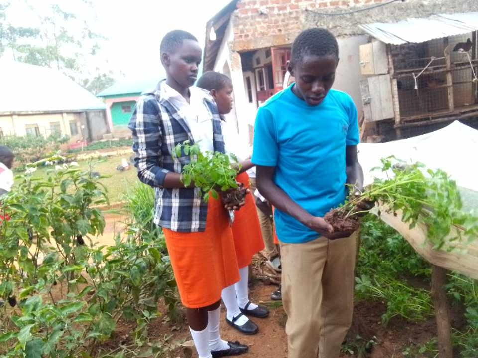 Crops grown like potatoes, bananas, cassava plus vegetables like skuma, cabbages, tomatoes, onions are used to boost the diets of the students themselves.